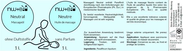 Dieses Massageöl enthält zu 100% dünnflüssiges Paraffinöl nach den Anforderungen der Europäischen Pharmakopöe (Ph. Eur.) in medizinischer Qualität.