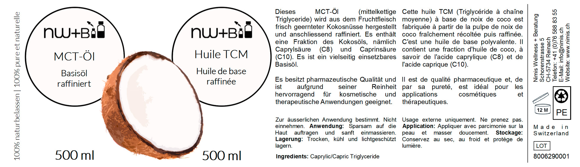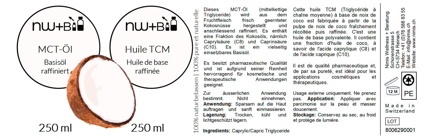 Herstellung: Hydrolyse und Fraktionierung der mittelkettigen Fettsäuren und anschliessende Veresterung mit Glycerin